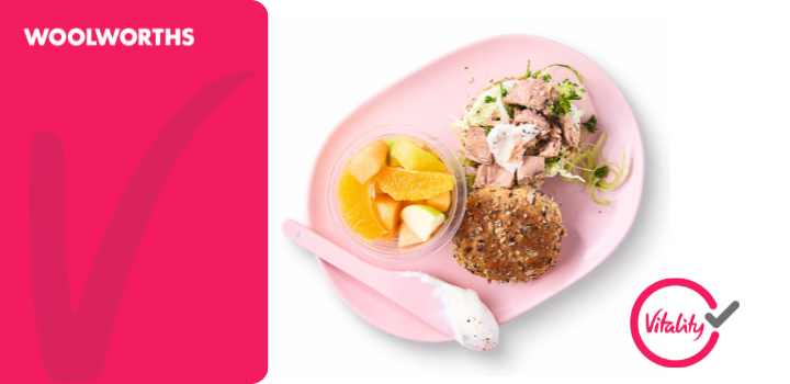 Plus, you can make your own scrumptious VitalityMeal lunchbox at home. Save the recipe below and get up to 25% back in Ðiscovery Miles on ingredients in the Woolworths Vitality HealthyFood Catalogue, in-store or delivered to your door. Plus, boost your rewards to up to 75% back with a qualifying Discovery Bank product.