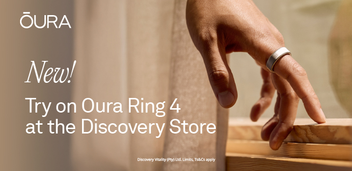 Order your Oura Ring 4 at the Discovery Store and pay a once-off R999 activation fee with your Discovery Bank card.